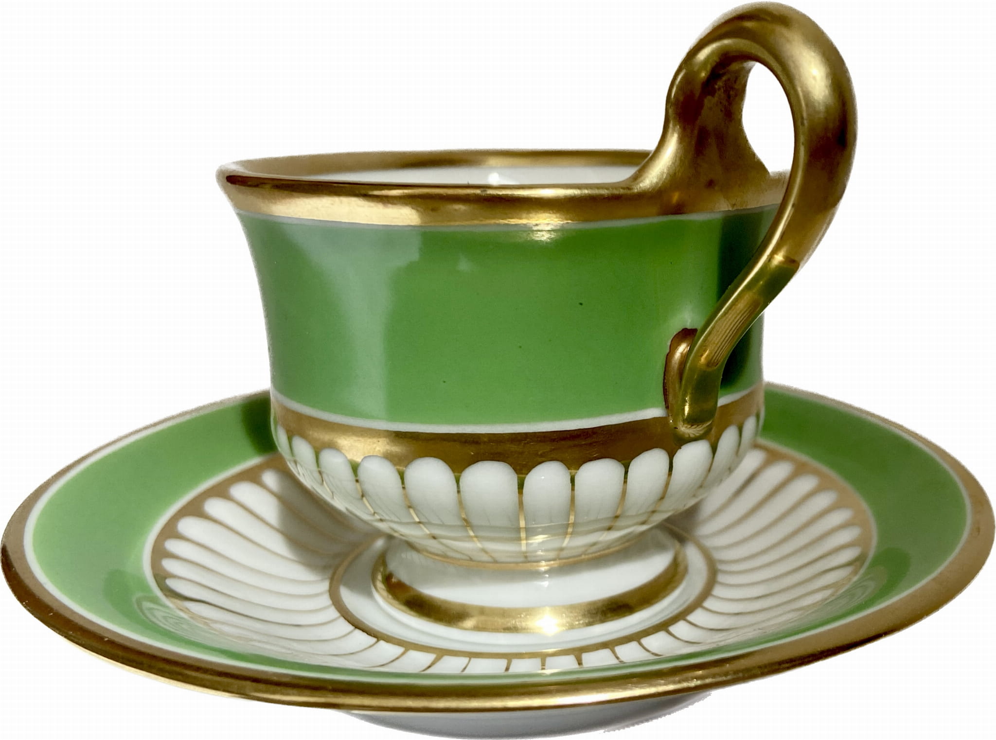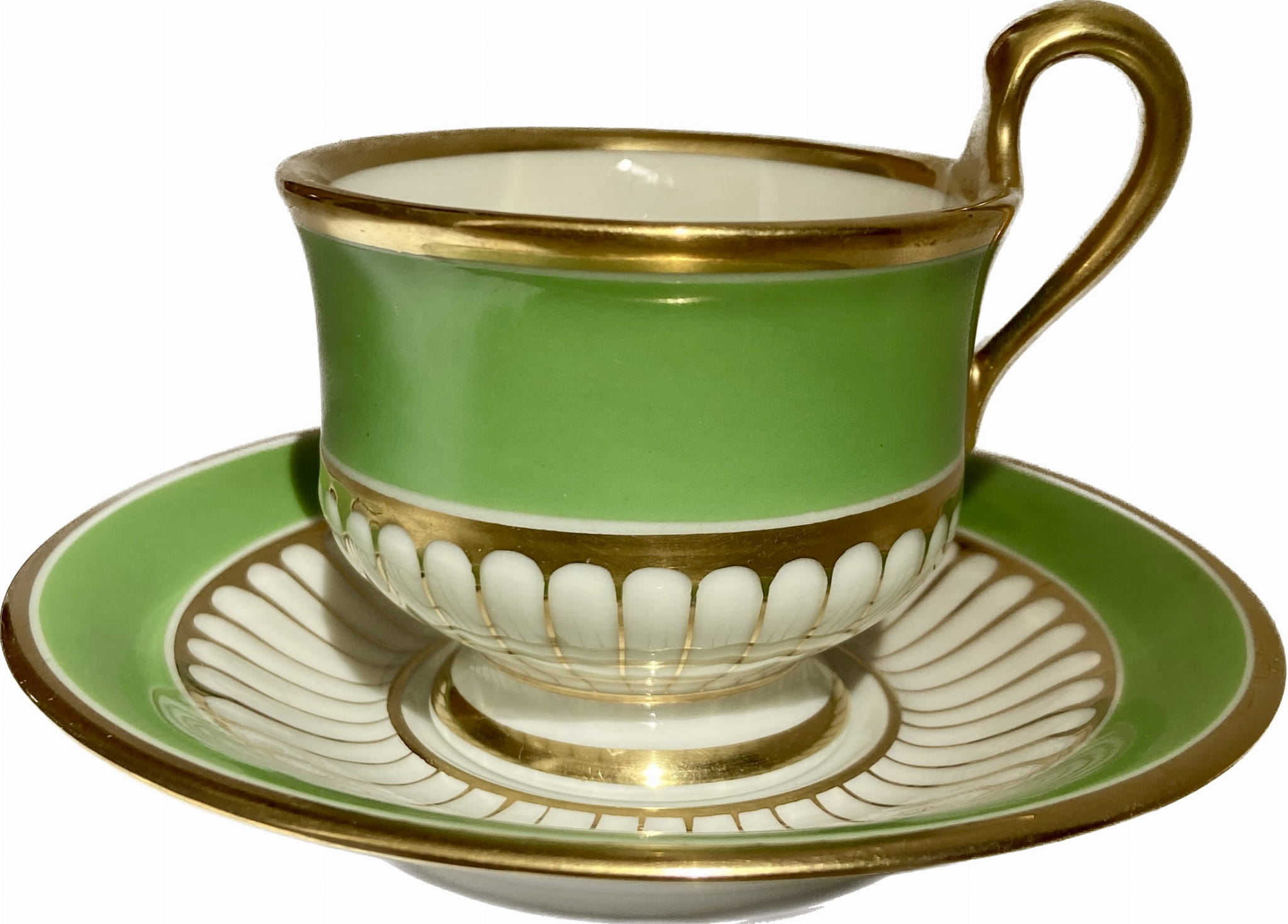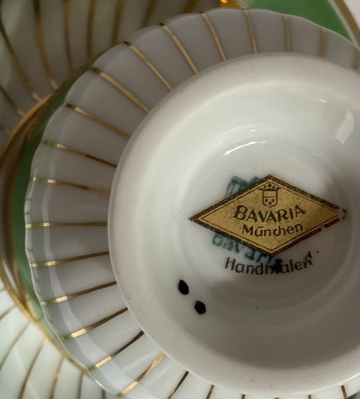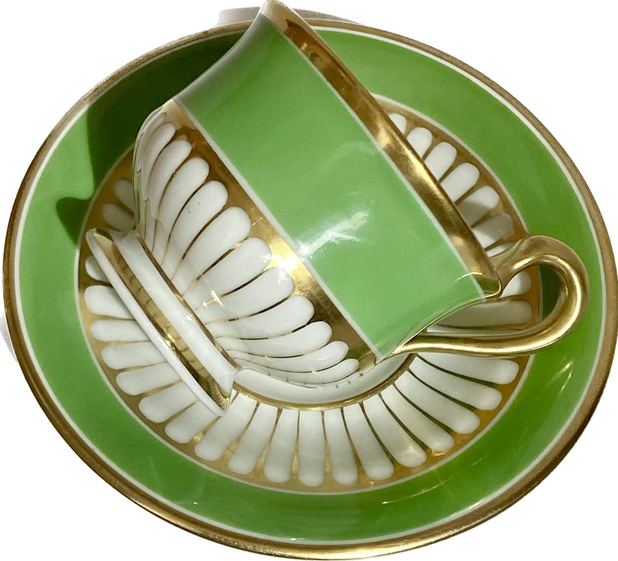 Filiżanka mini o biedermeierowskiej formie. Porcelana biała, barwiona w zielonym kolorze, ręcznie złocona. Stan idealny, bez przetarć. Porcelana Thomas, Malarnia Bavaria Munchen.